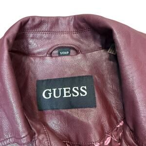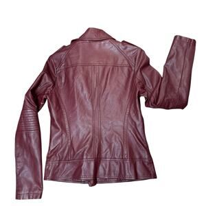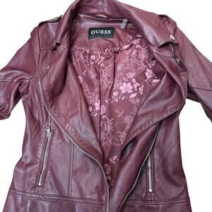 Guess Faux Leather Maroon Zip Up Women's Moto Jacket