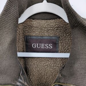 Guess Faux Leather Men's Medium Bomber Jacket Sherpa Lined Field Cargo Military