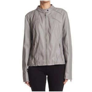 Guess Faux Leather Racer Jacket, Grey, Size Medium