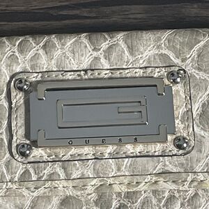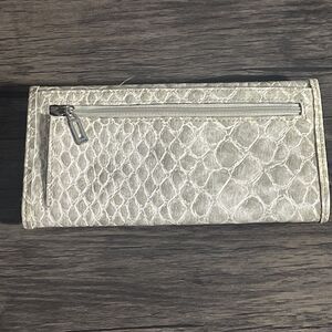 Guess Faux Leather Snakeskin Clutch Wallet Metal Plate Logo White Gray 7.5"