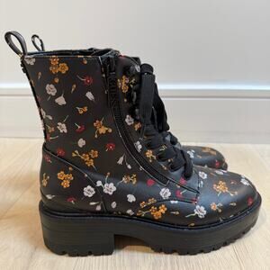Guess Fearne Floral Black Combat Boots SZ 8.5 Vegan Leather Punk Grunge Emo Y2K