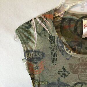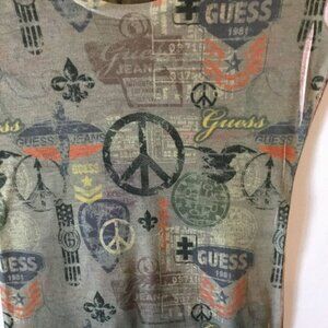 ITEM: Guess women's fitted cap sleeve road sign peace sign tee.
