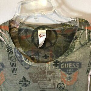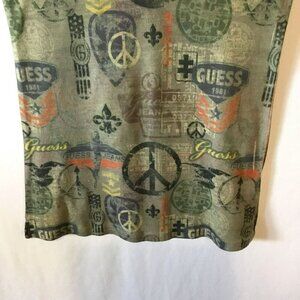 Guess Fitted Roadway Peace Sign Tee Cap Sleeve Women's 4 Green Stretchy Casual