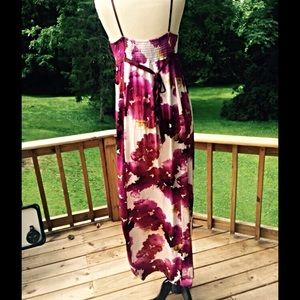 Guess Floral Maxi Dress. Burgundy and white. Adjustable straps, sequence detail on straps. Posh Rules. No trades. Offers taken through offer button only.
