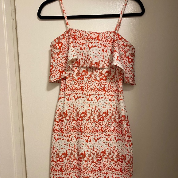 I ADORE this dress- wore it for my college graduation (and maybe one other time). Size 0, but could fit up to size 2/4. Has removable straps so it can be worn strapless as well. Beautiful floral pattern. No-slip grip at neckline so it stays up super well!
