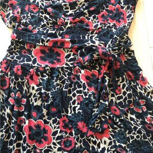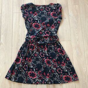 Guess Floral Print Tie Waist Dress in Red &Black Size S