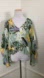 Guess Floral Rayon Blouse Bell Sleeve V Neck Women’s L Tropical Ruffle Hem