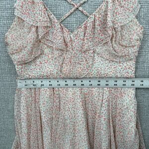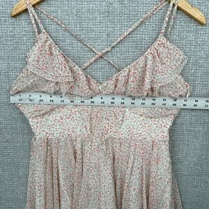 Keywords: Guess, Floral Dress, Mini Dress, Ruffle Dress, Spaghetti Strap Dress, Criss Cross Back, Summer Dress, Party Dress, Casual Dress, Womens Dress, Size 6, Polyester Dress, Floral Print, Lightweight Dress