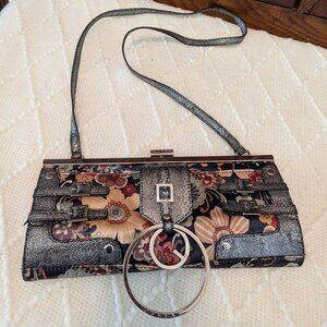 Guess Floral Satin Clutch Shoulder Bag Purse
