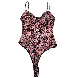 Guess Floral Snap Bottom Mesh-like Bodysuit Adjustable straps Size XS
