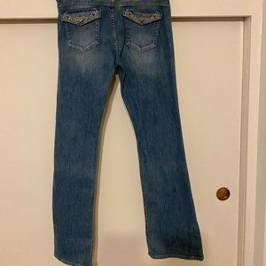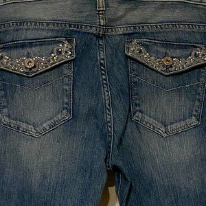 GUESS Foxy Flare Women's Embellished Pockets, Distressed Denim Jean - Size 32 Stretch