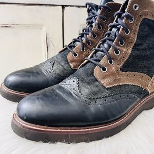 Guess 'Frederick' Black & Brown Leather Lace up Mens Boots - Size 9D
