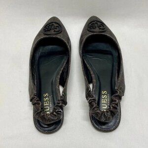 Guess GFMarnie Slingback Flats Women's 6.5 Brown Black Logo Pointed Toe Shoes