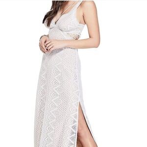 Guess Gianna White Lace Overlay Maxi Dress Cut Out Sleeveless Slit Wedding Small