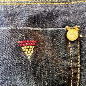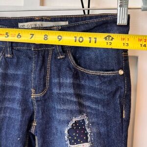 Guess Girls Size 10 Distressed Glitter Bling Rhinestone Skinny Low Blue Jeans