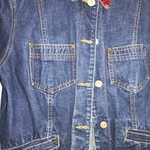 Guess Glamour Denim vintage trucker denim jacket velvet trim Sz L