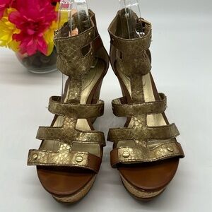 Guess Gold Cork Wedge Sandals Size 8 MCW6297B