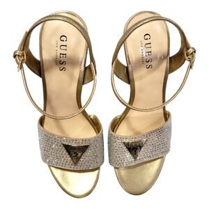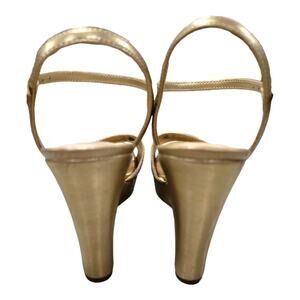 Brand new never worn.  Gold open toe platform Wedges with Rhinestone detail. 6 inch heel and 1 inch platform.