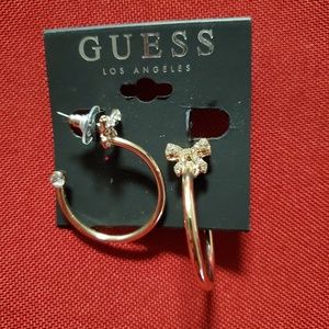 A pair of gold Guess hoops with rhinestone ribbons. Perfect for a gift. New never been worn.