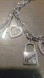 Authentic Guess charm bracelet with padlock, hearts, key, tassel, and rhinestone charms. Features mixed metal tones. Stylish and versatile."