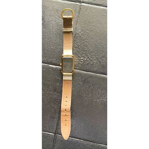 Guess Gold-Toned Rectangle dial Watch w/White Genuine Leather strap, Signed