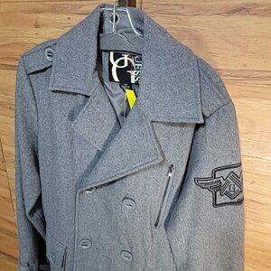 Guess Gray Size S Wool blend Double Breasted Pea Coat. Large outside pockets and an inside breast pocket