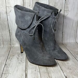 Guess Gray Suede Tie up Ankle Booties size 7.5 Side Zip Pointy Toe