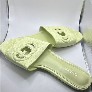 Guess Green Textured Slip-On Sandals