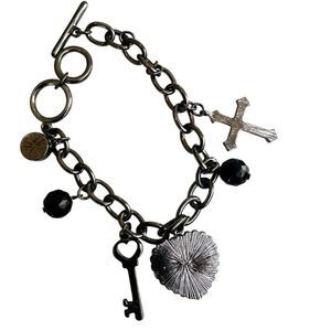 #Guess #Y2KJewelry #CharmBracelet #HeartCharm #GuessJewelry #FashionBracelet #RetroStyle #GunmetalJewelry #StatementBracelet #JewelryLovers