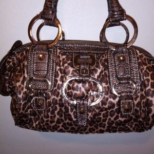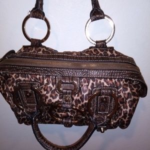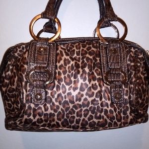 Very cute leopard print handbag, top zipper close,gold stud and circle accents , like new condition, no signs of wear inside or out.