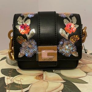 Brand New with Tags Guess Handbag with beaded flowers and gold hardware.
