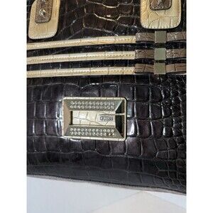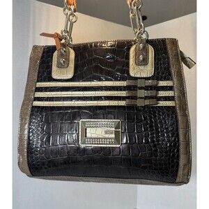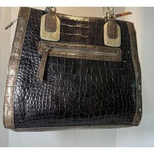 Guess Handbag Purse Brown & Tan Patent Leather Alligator Read Description Y2K
