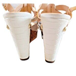 Guess Harlea White Snake Skin Embossed Cork Wedge Heels Size 10