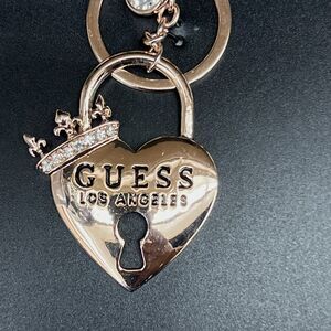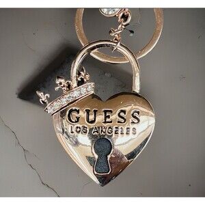 Guess Heart Padlock Crown Bag Charm Keychain Gold Tone BLING Fleur De Lis