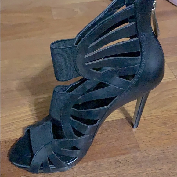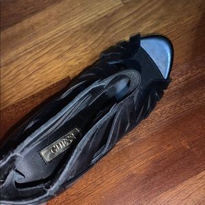 Super cute cut out Guess heels. Black with a gold zipper in the back. Purchased a few years ago from the Guess store, worn twice.