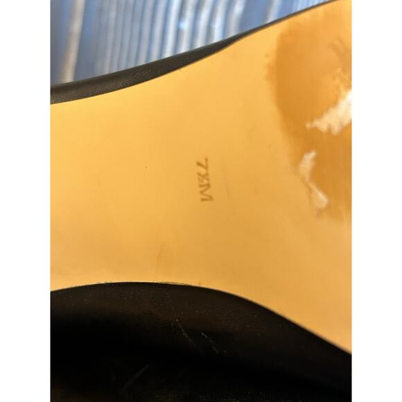 These are stylish GUESS lace-up peep-toe ankle booties with a stiletto heel. They are made of black buttery leather with a gold tone grommets and black leather laces--gorgeous. The heels are ultra-high, perfect for parties, formal events, or business settings. The shoes are in US size 7.5, UK size 5.5, and EU size 38, with a medium width. Very good condition.