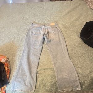 Chic high rise jeans with a trendy ripped design. Perfect for casual outings. Very lived in but super cute. Just rest for a new pair 80s high rise flare distressed jeans