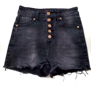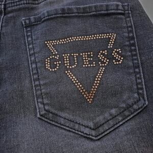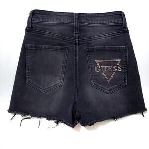 Guess | High Waist Distressed Button Up Shorts with Rhinestone Logo on Back