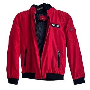 Essential bomber jacket with removable hood and utility pocket on left sleeve