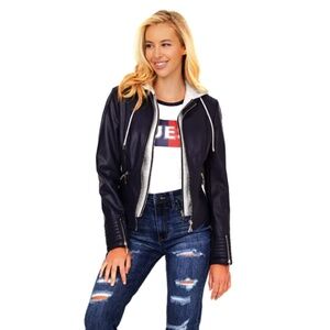 Guess Hooded Faux-Leather Jacket NWT