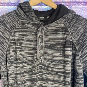 Guess Hoodie Women's Sweatshirt Medium Logo Button Up Pullover Gray