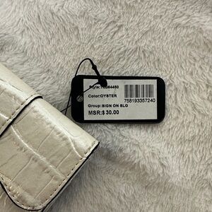 Stylish ivory wallet with croc texture. Features sleek black accents. See all pics they are part of description