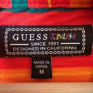 Bold Guess tee with red, orange and greenstripes. Ideal for a trendy look.