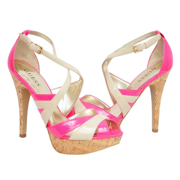 Guess JACLYN Strappy Platform Pump Sandal Patent Heel Pink/Ivory 8.5/9.5 New