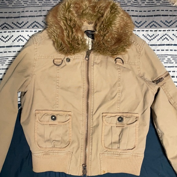 All imperfections I are in the pictures. Does have a detachable fur collar.