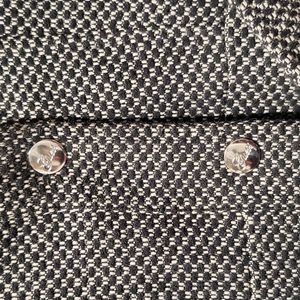 Beautiful black and white longer peacoat. Both zipper and button front. two zipper front pockets. Coat is in great condition.