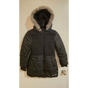Guess Jacket Girls Size 14 Medium Guess Kids Black Coat with Hood Y2k Faux Fur