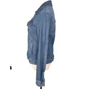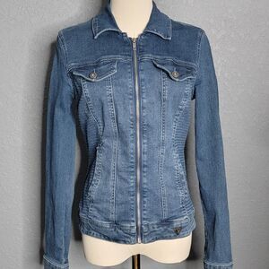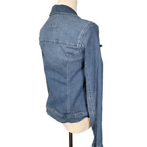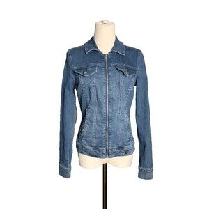 Guess Jacket Med Rigby Denim Moto Zip Distressed Blue Jean Stretch Denim Zip