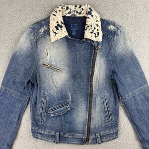 Guess Jacket Womens Extra Small XS Blue Sveva Denim Jean Lace Trim Distressed