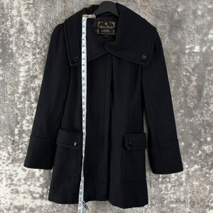 Guess Jean Sz S Wool Blend Pea Coat Black Long Sleeve Snap Button Outdoor Winter